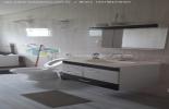 uma cozinha ampla de 30 mts toda no porcelanato e forro de drywall, janela e porta de vidro de correr