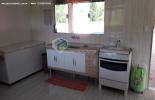 uma cozinha ampla de 30 mts toda no porcelanato e forro de drywall, janela e porta de vidro de correr
